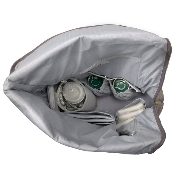 De rugzak heeft een ruim hoofdcompartiment met een roll-top sluiting, waardoor je gemakkelijk toegang hebt tot je spullen en de capaciteit van de tas kunt aanpassen aan je behoeften. Het interieur is voorzien van verschillende vakken en compartimenten om luiers, doekjes, kleding en andere babybenodigdheden georganiseerd te houden.