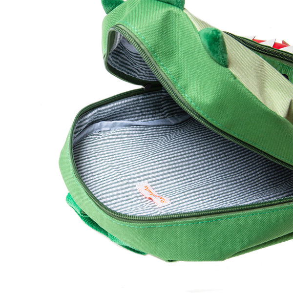 Prends la route avec tous tes essentiels dans notre sac à dos Dinosaur super cool ! Fabriqué en tissu vert dino avec des détails en feutre, ce sac à dos a des poignées de transport, une poche frontale zippée, des bretelles réglables et une doublure amovible et lavable. Vraiment génial !