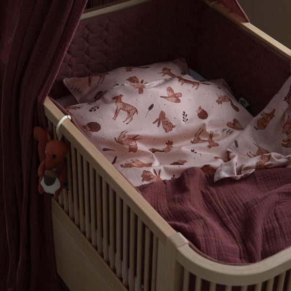 Couverture aérée en 100% coton biologique par Sebra. Cette couverture est douce, respirante grâce aux six couches de tissu hydrophile et a une texture agréable. ELa matière en coton biologique est douce et confortable pour la peau. La couverture mesure 85 x 85 cm et peut donc également être utilisée comme couverture pour les nouveau-nés. Emportez la couverture en déplacement et utilisez-la pour vous asseoir ou jouer, ou comme paravent lorsque vous allaitez et que vous avez besoin de vous reposer autour de votre enfant. Lorsqu'elle n'est pas utilisée, la couverture constitue une belle décoration pour le canapé ou le lit d'enfant.